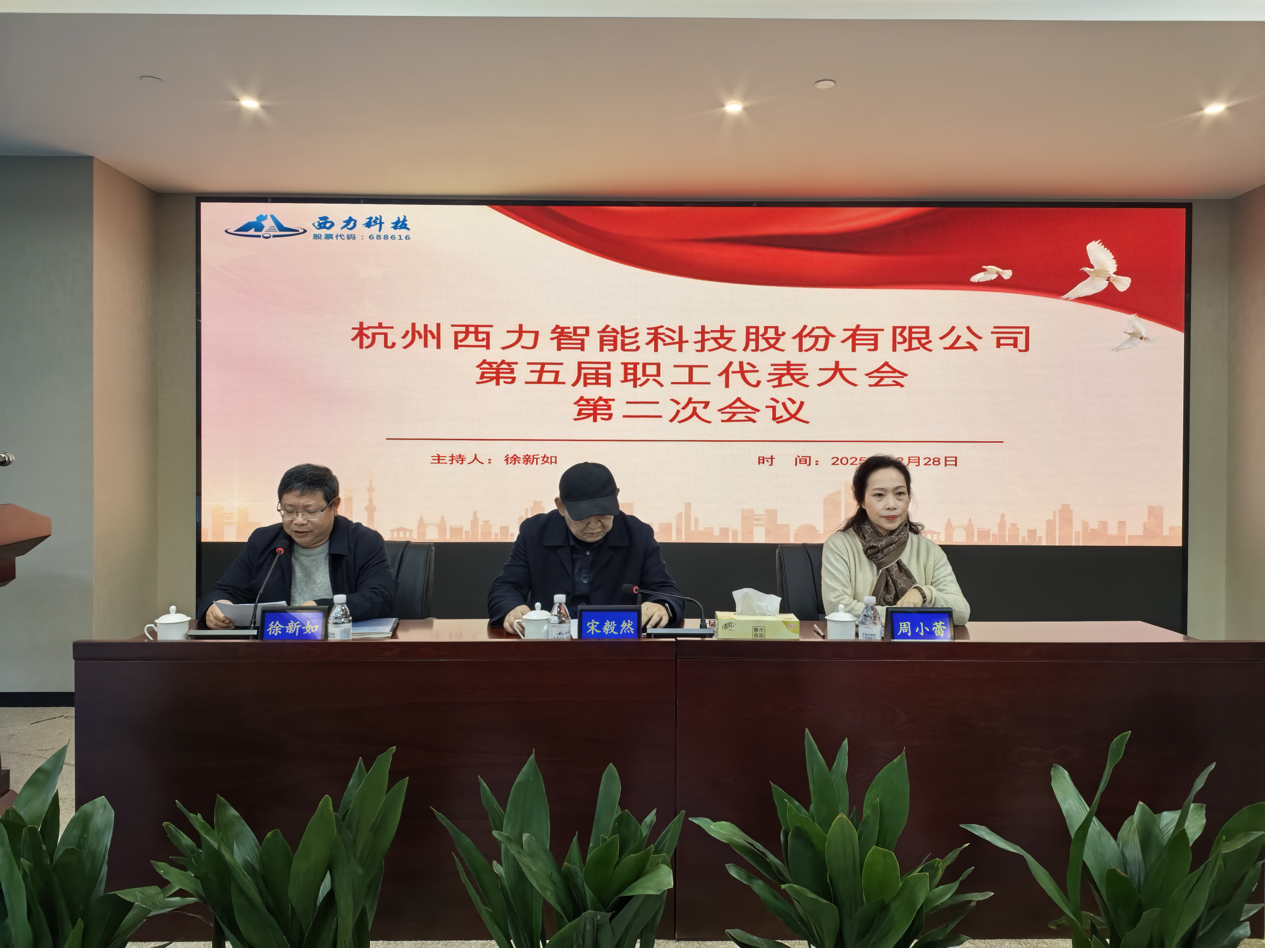 2025年2月28日,公司第五屆職工代表大會第二次會議在德清廠區培訓室隆重召開,全體職工代表出席會議,全體中層及以上干部列席會議,會議由工會主席徐新如主持。