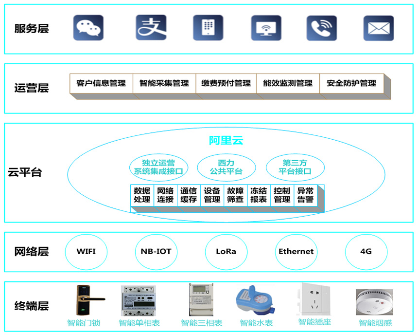 西力智慧公寓管理解決方案基于智能硬件終端、物聯網通訊技術、云服務平臺、系統管理主站、手機客戶端為一體,實現用戶信息管理、數據自動采集、預付費、能效監測、安全防護等功能。利用極少的成本投入,即可以實現公寓智能化運營,幫助解決看房難、收租難、水電費管理難等問題,提高安全保障和營收效率。