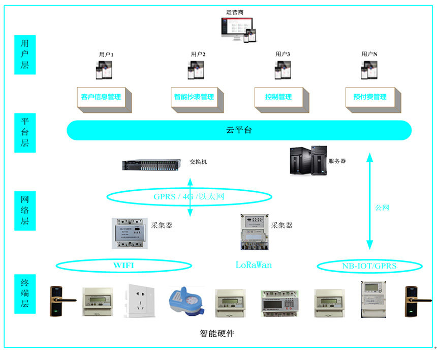 (3)降低運營成本:與現有公寓運營模式相比,該方案的投入使運營商不再為房租、水電費催收難而煩惱,對所有用戶用電用水運行了如指掌,使偷漏電水問題得到遏制,公攤費用更加公平合理;取消上門抄表,降低服務人員投入,助力運營商降本增效;提高資金回籠率,提升與用戶的互動性。此外,運營商還可以通過系統平臺進行增值服務與大數據挖掘帶來新的盈利點,提升企業收益。